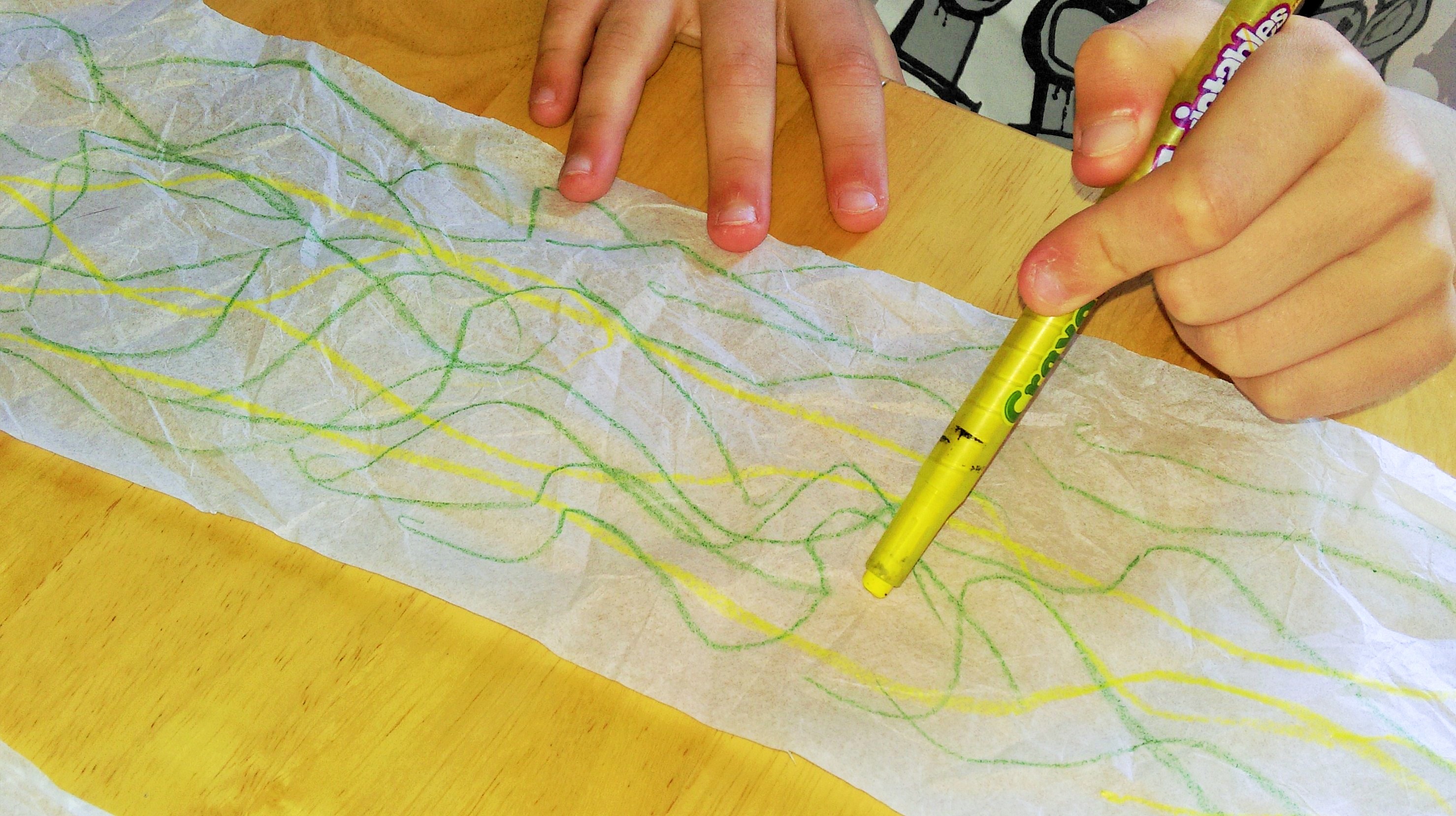 Everyone was given two pieces of tissue paper – a long piece that would make the kite ‘tails’ and a square piece that would make the ‘body’ of the kite.