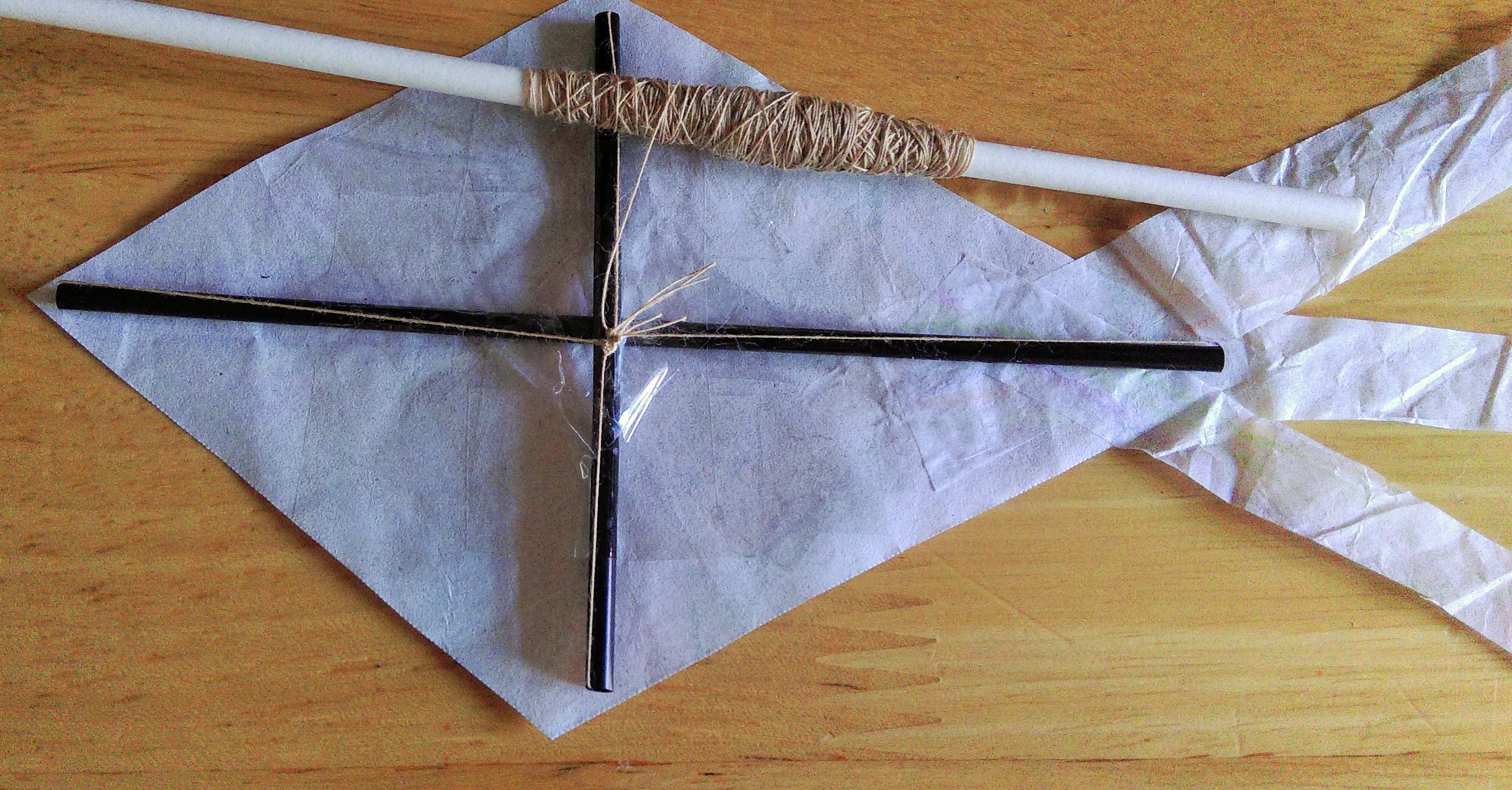 That’s how high you’ll need to count for the next part as you wind thread around a cake pop stick to make the kite handle…the kids actually really enjoyed this much more than I had anticipated! Attach the end of the thread to the two lengths of knotted thread you put through the straws earlier.