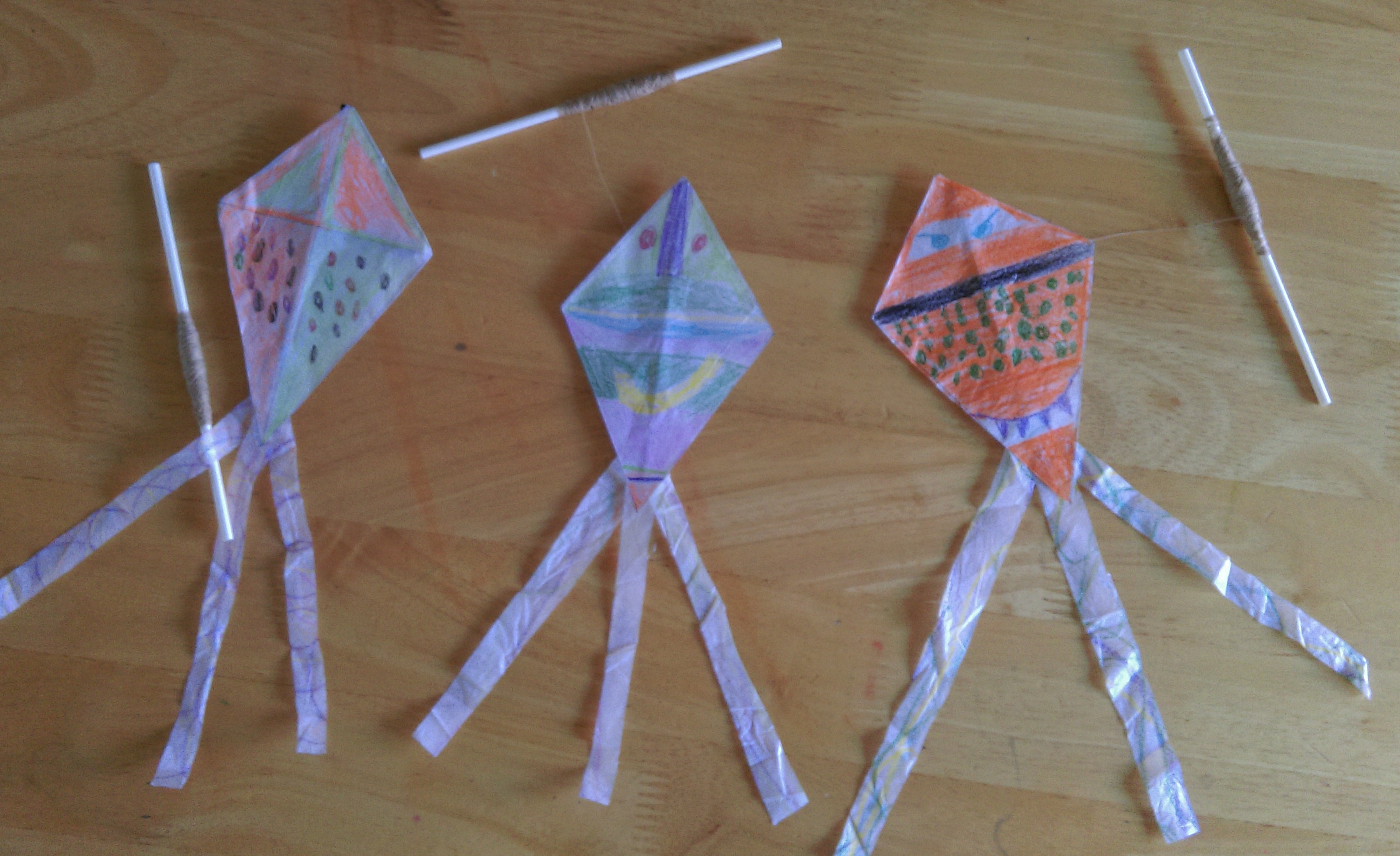 I posed the question over breakfast: “What to do on a windy day?” The answer: “Make kites!”
