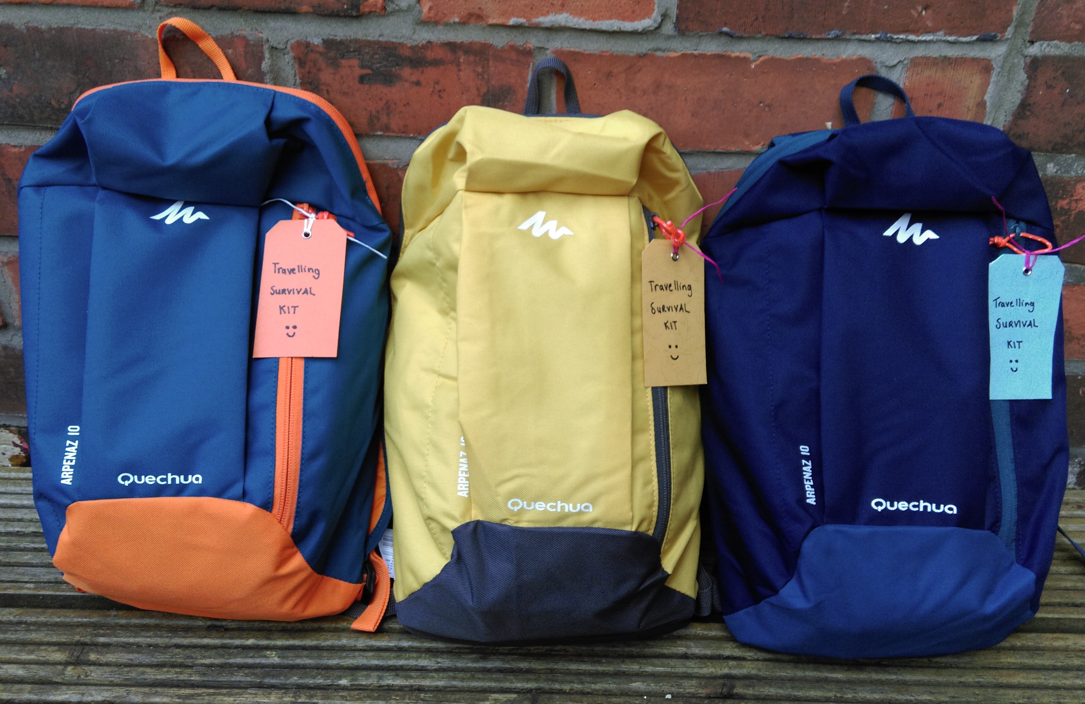 With that in mind I purchased 3 cheap rucksacks – one for each child, attached a ‘Travelling Survival Kit’ luggage tag, and suddenly a plain, boring rucksack becomes a treasure chest full of things to explore and enable adventure – when I showed them to my boys their eyes lit up. Anyone would think I was sending them off alone on an expedition to the North Pole!