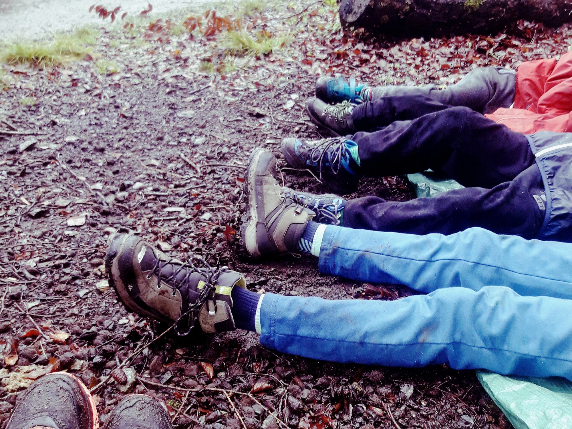 When lunchtime approached, we climbed the 74/75/76 steps (we couldn’t agree how many there are!) to the high section of the walking route and we laid out the tarpaulins to sit on so that we were overlooking the forest below – a fine place to dine indeed! The boys played human dominoes as they tucked into their sandwiches and hot chocolate and my heart did a little flip as I watched them laugh and mess about. I was talking to my 12-year old the previous night about how quick his childhood is whizzing by and it was lovely to watch him interact with and entertain the littler ones while enjoying being young and free himself. I am so grateful for these days spent out together in wild spaces, where kids just get to be kids, unplugged, hands and clothes muddy, eager to roam and explore and be carefree.