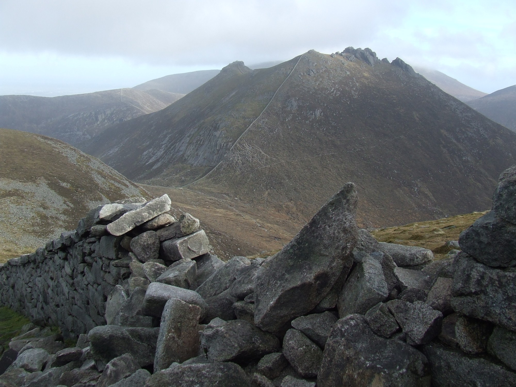 We set up picnic against the Mourne Wall, the ideal spot for a lunch with a view. We enjoyed the stillness and silence, said hello to a few passing hikers and their pet dogs, before we headed onwards, having by then decided to keeping going and climb Slieve Meelbeg also.