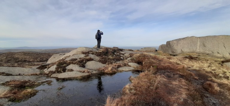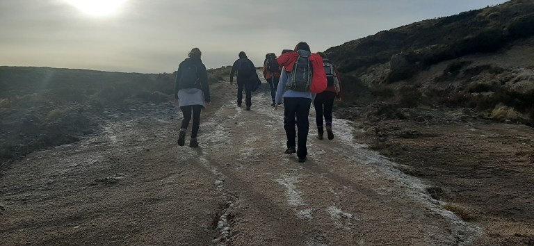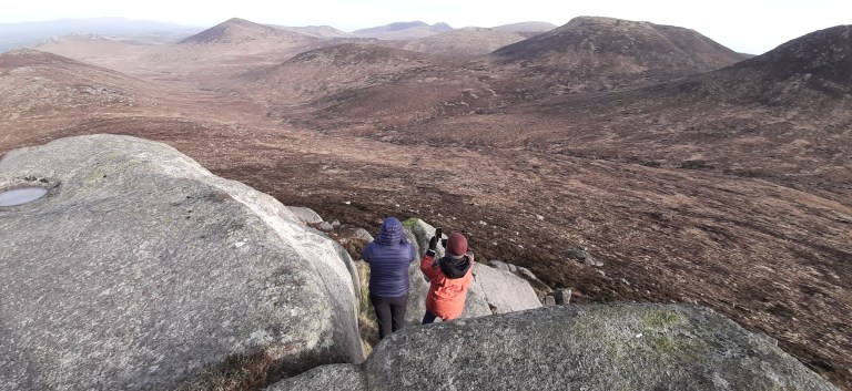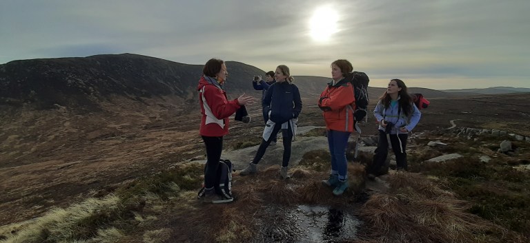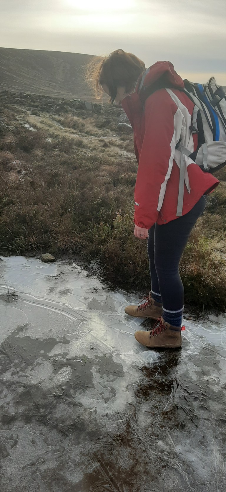 Unusually, it wasn’t windy when we reached Pierce’s Castle and we were able to stop here for lunch, some relaxed conversation and to really enjoy the views. Then, once we had refuelled we continued onwards, this time across the grasslands and boggier terrain. This involved paying a little more attention to where we were treading so as not to end up knee-deep in mud – thankfully, the ground was still quite frozen and no-one lost a boot! We stopped lots of times along the way to admire our surroundings and to enjoy a few home-made snacks to keep energy levels up.