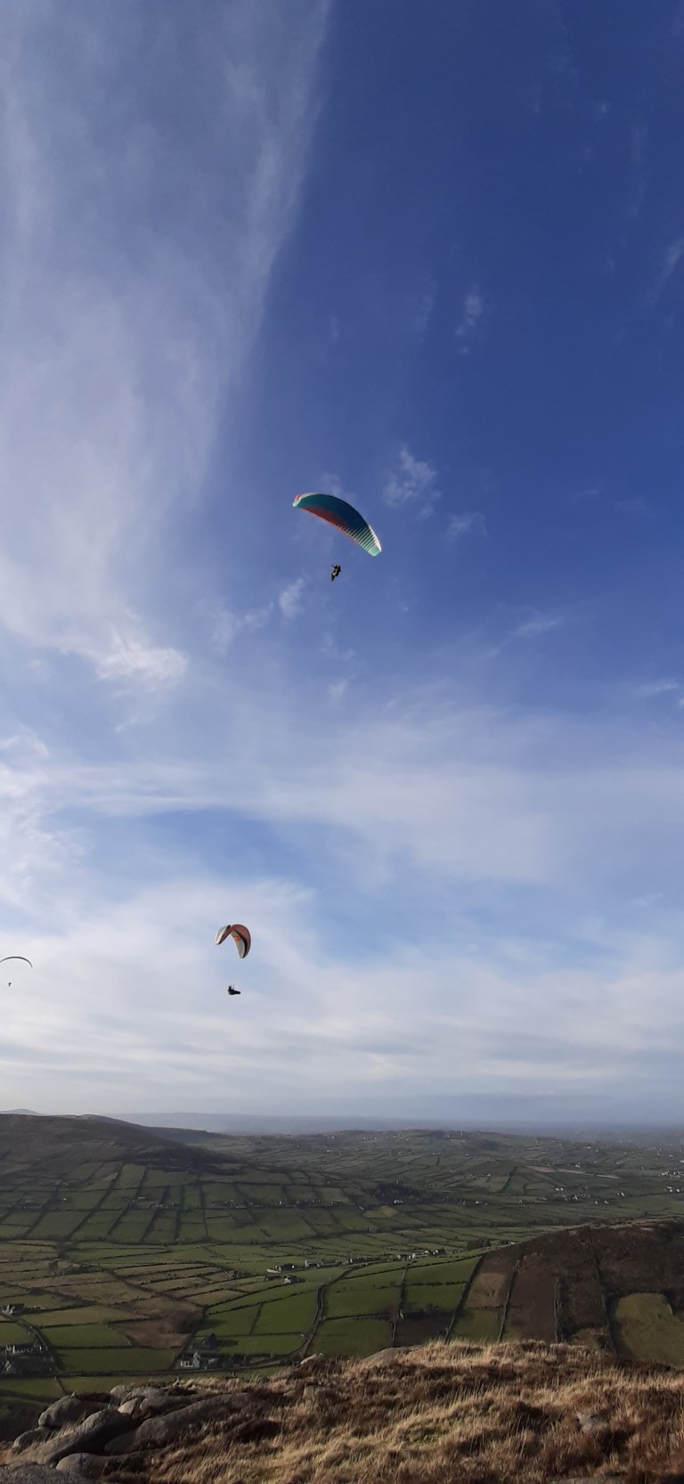 Next, after a group discussion, it was onwards to the summit of Rocky Mountain. Following a short but fairly steep incline we were treated to an unexpected but wonderful paragliding display.