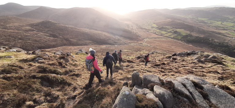 On Saturday, the weather was equally kind for the first of my Wild Women Wanders in the Mourne Mountains. Six of us gathered for a leisurely hike and could not have asked for a better day. It was certainly cold and crisp but the sun shone and the rain stayed away making it very easy to walk and talk and enjoy the beautiful and far-stretching vistas of the Kingdom of Mourne.