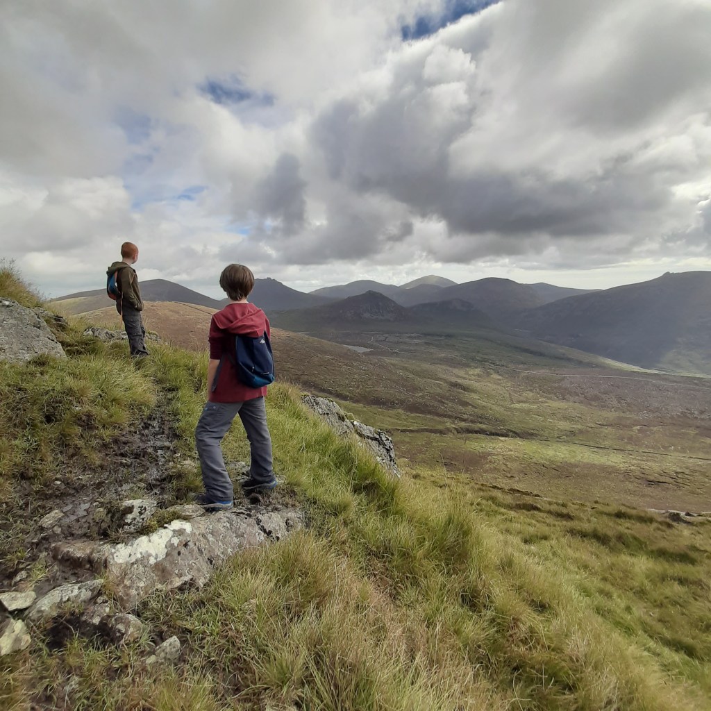 With that in mind, a couple of weeks ago we set our alarms for 6.30am and the whole family was crossing the stile at the foot of Slieve Muck in the Mournes by 8.30am. The early bird catches the worm and all that and also beats the crowds rushing to the hills for some respite now that lockdown restrictions have eased-off a little. We hadn’t climbed Slieve Muck together as a family before and I was eager to introduce my husband, 3 boys and our husky pup, Kai to its extremely steep slopes and stunning views from the summit.