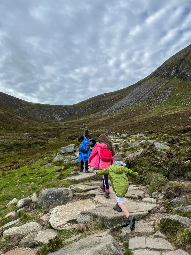 We’d been dabbling in hiking since 2018, taking the children on some of the more accessible routes in the Mournes: The Granite Trail, Hares’s Gap, Rocky Mountain and some coastal cliff walks on the North Coast. When it was considered ‘safe’ to do so, that seemed to be the natural next step. We all had boots and waterproofs already and so off we went. And I was HOOKED! I bought a hiking book, an OS map, downloaded every app I could find and trawled Instagram for ideas. When our summer holiday abroad was cancelled, we booked our caravan into a local forest and hiked every day. I just wanted to see and do ALL THE THINGS because I was so thankful that I was well enough again to do so!