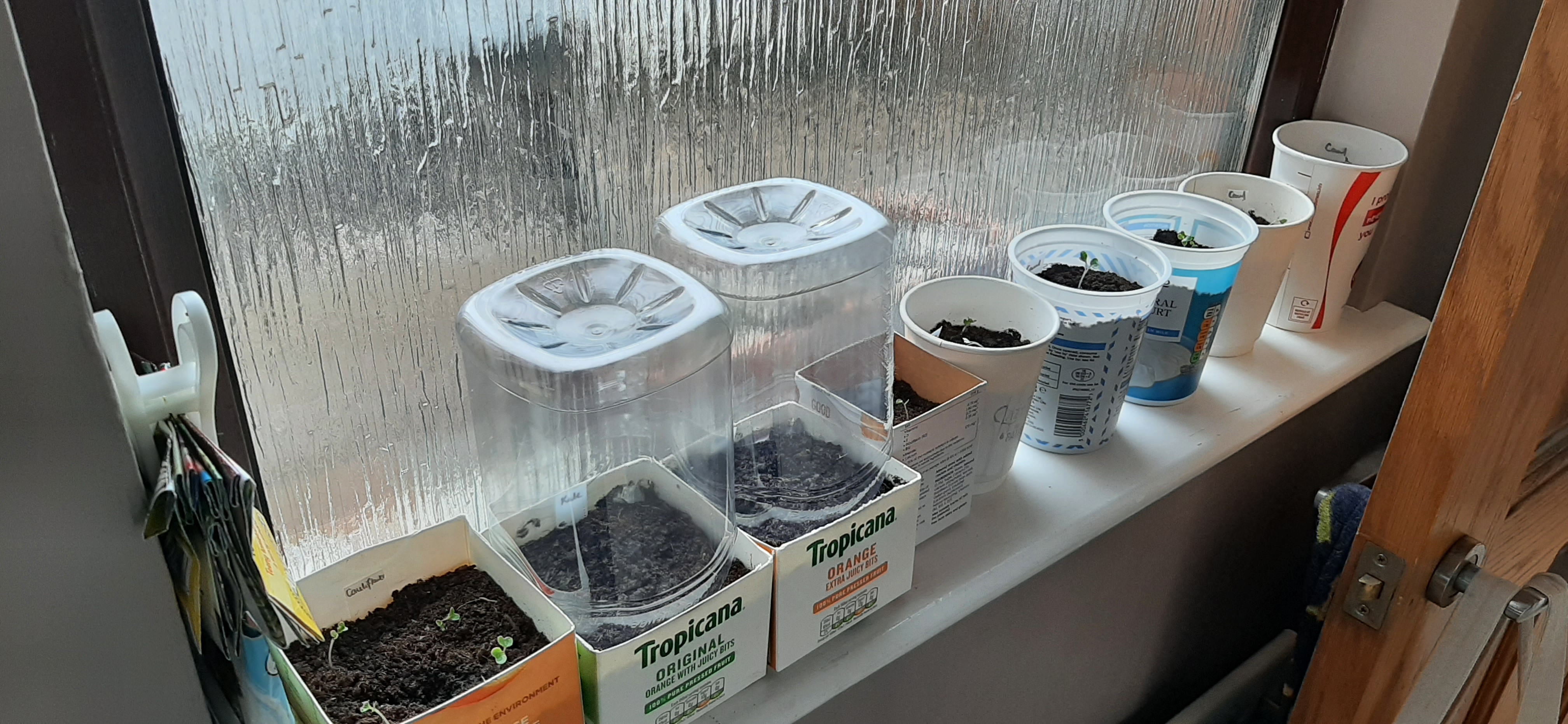 You’ll see from some snaps I have included in this post that I’ll pretty much pop a seed in any container I can find that will hold some compost and all of my labels are made using old milk cartons. I don’t spend a lot of money on the allotment, preferring to reuse what I have lying around and it’s a really good way to unleash your creative side. I have loved learning to saw, hammer and screw, to construct things using scrap wood and am very, very excited for our next big project which we hope to start work on this weekend if weather permits – a shed made from pallets! Watch this space for an update on that one! It will be unique that’s for sure and much cheaper than buying a premade shed if all goes according to the plans my husband has dreamt up!