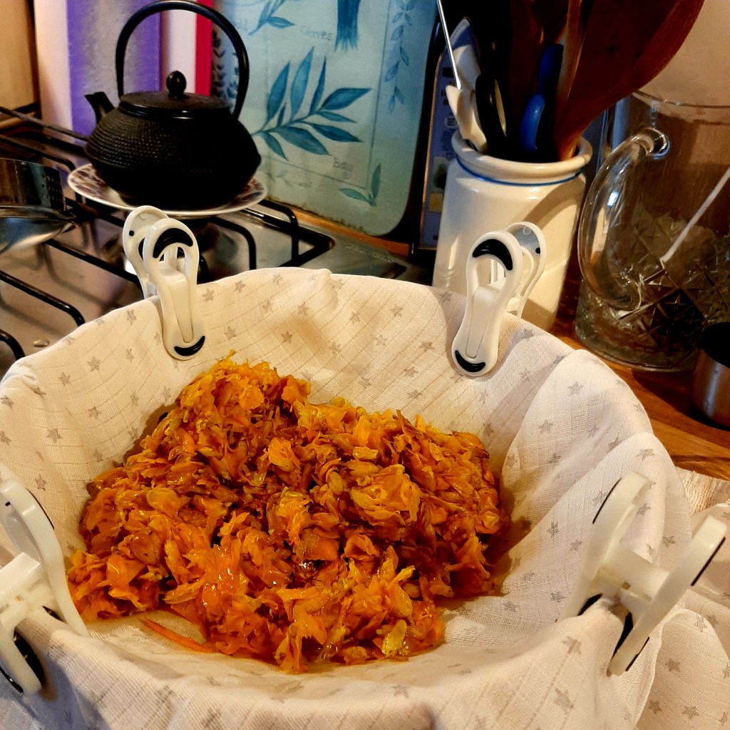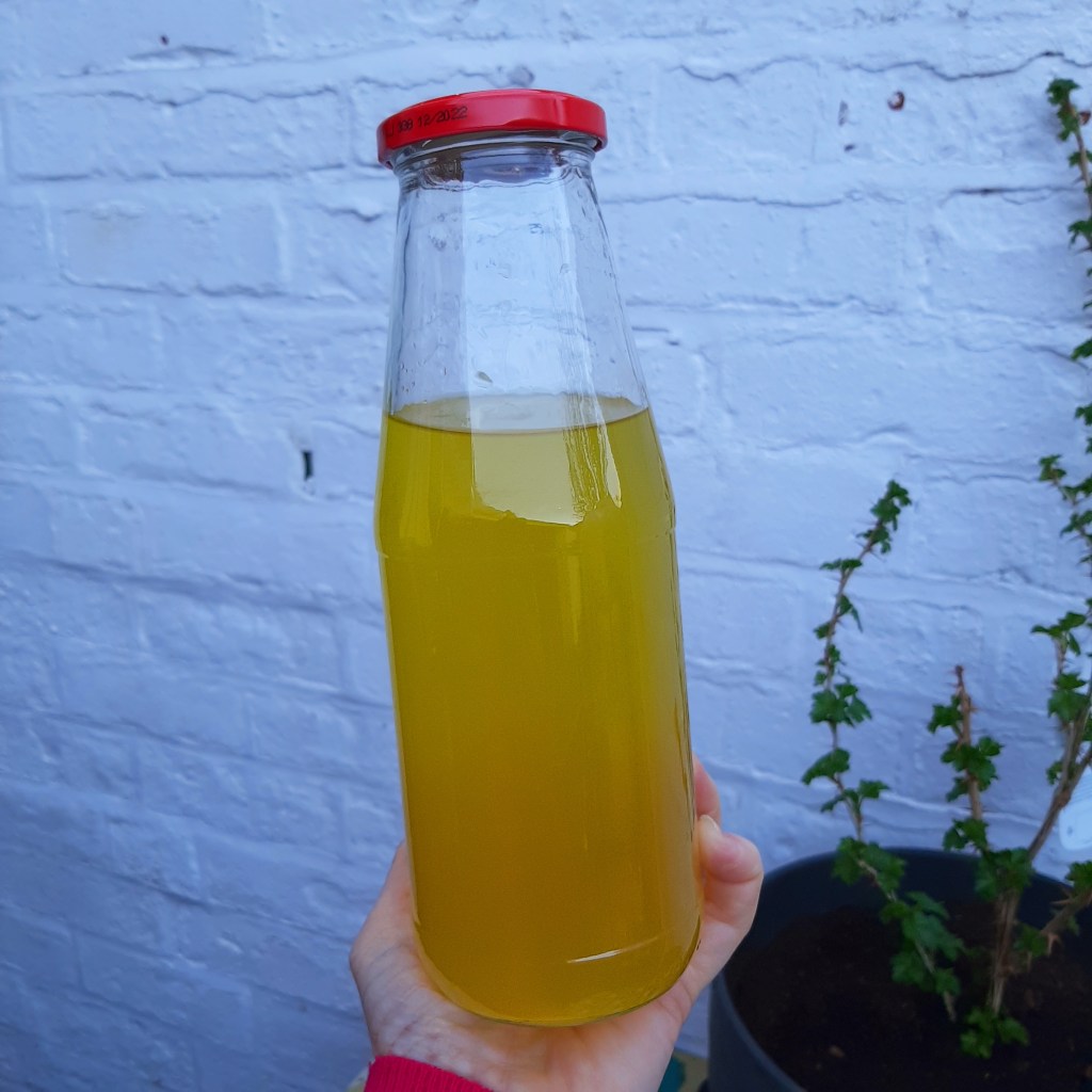 4. Strain through a clean muslin and pour into a sterilised bottle. You will have about 500ml gorse syrup which you can dilute to taste or use in baking