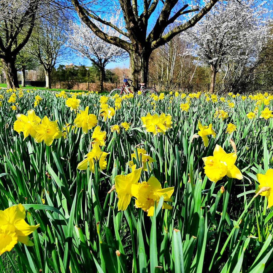 My son seemed interested enough to learn all of this but I knew that he was also itching for a whizz around the BMX track so we headed onwards, taking care not to run over brave squirrels perched on the pathways. I took a few videos of the BMX ‘stunts’ and then leant back against a tree to watch my son play while I also admired the daffodils, blossom, blue sky and listened to the birdsong – bliss! There’s no need to head off into the wilderness to connect with nature, sometimes it’s simply a case of slowing down and paying attention to what’s right there on our own doorsteps!