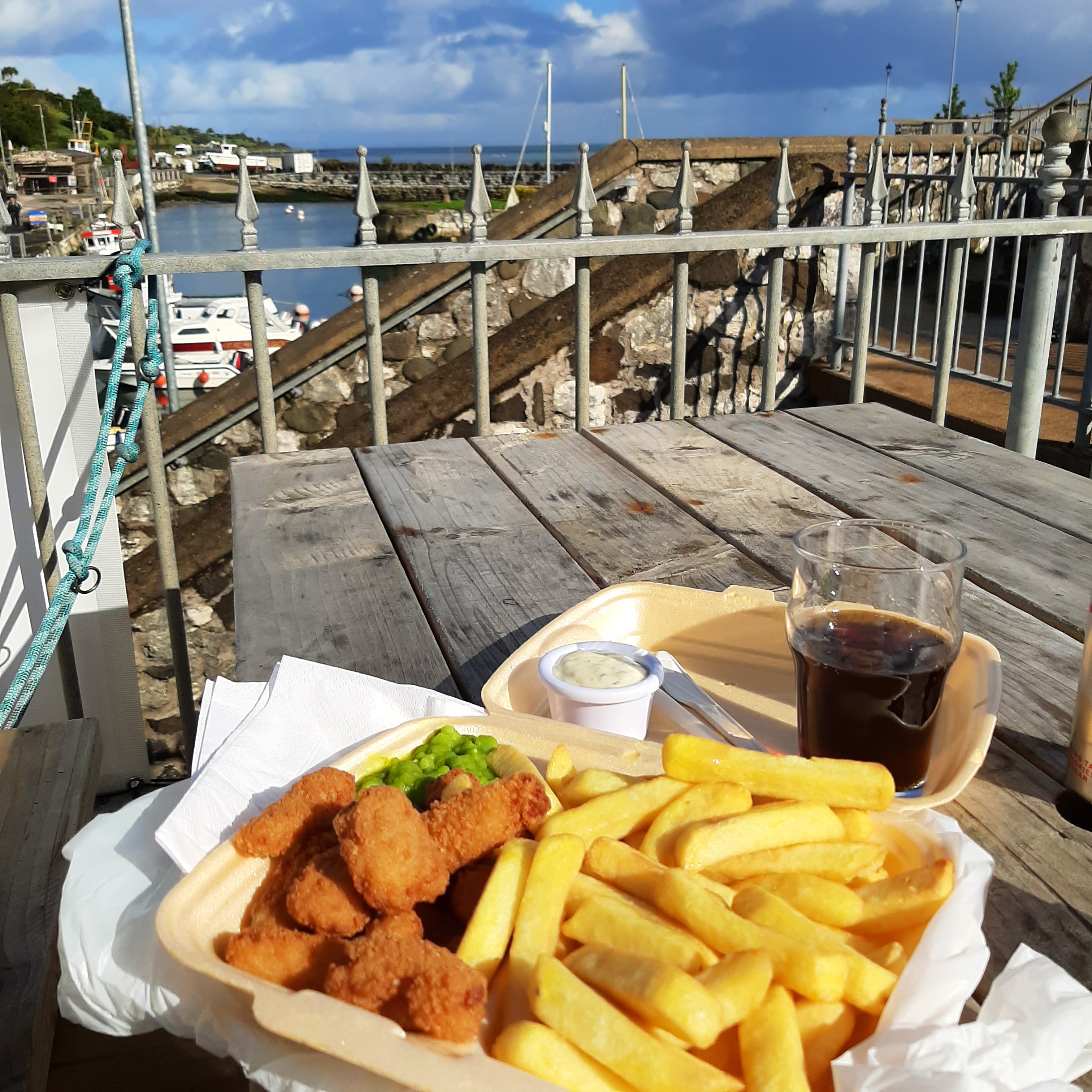 It rains again, but we don’t mind at all now that we are out. It clears up on the way back along the path, a faded half-moon hangs in the now bright blue sky and painted lady butterflies flit about in the long grass. We take our time, and I pick luscious blackberries from the hedges to take home for the boys. Once back in the village we share scampi and chips on a picnic bench overlooking the harbour, colourful wooden boats bobbing gently on the tame sea. We finish eating just before another downpour and dash back to the car. I stop at a tiny beach on the way home so Kai can have a quick paddle in the sea and dig some holes; his favourite past-time and the only thing that seems to really tire him out. We are pelted by hailstones next and I think how true it is what they say about Northern Ireland experiencing all four seasons in any given day. Visiting Carnlough has been the furthest I’ve ventured on my own since having Covid and I can feel my confidence gradually returning. I am reassured that I will feel well again and that it will simply take time and patience. Our little coastal adventure was exactly the pick-me-up I needed and I head home wind-swept and happy, pockets full of juicy blackberries to share with the family.