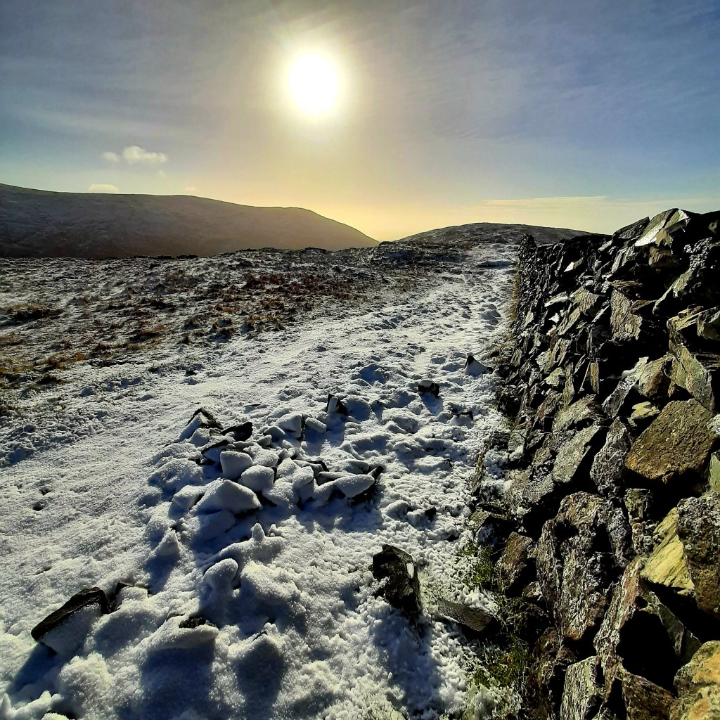 So, I left home early to beat the morning traffic and was on my planned route by 8.30am, the sun was just rearing its head from behind Slieve Muck, casting golden beams onto the slopes of Pigeon Mountain. I knew I was in for a good hike, and I certainly needed it. My heart was heavy. The previous day Russia had invaded Ukraine and all I could think about was the poor people whose worlds had been flipped upside down. After everything the world has been through over the past few years with the Covid-19 pandemic, it just seemed so cruel, so senseless. We’ve barely had time to catch our breath. And yet, the pursuit of power and greed is high on Putin’s agenda. I just don’t get it. As I trudge along in the pure, untouched snow, I am heartbroken and I am angry. This is not the world I want to live in. It’s certainly not the world I want for my children.