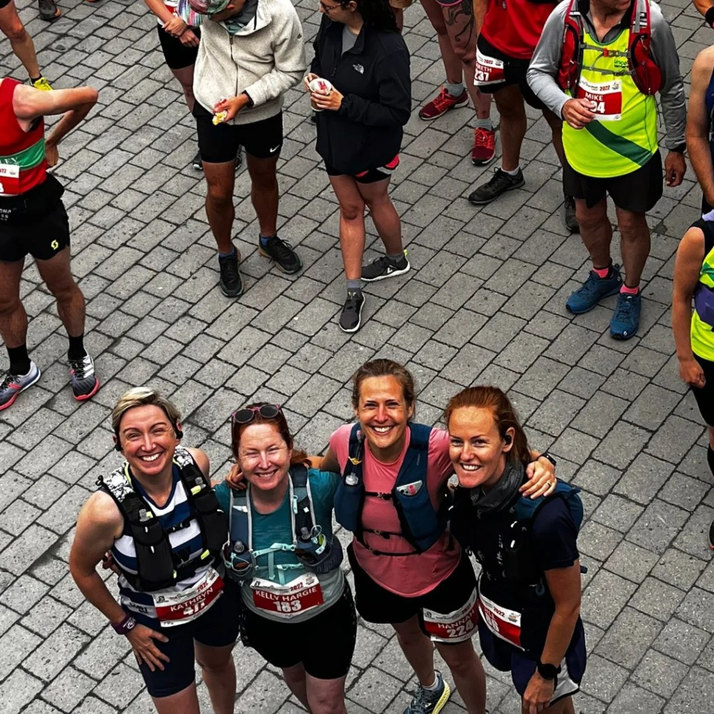 But, as challenging as it was it was also so unbelievably beautiful and the atmosphere was electric as runners spurred one another on. I tried to drink it all in, to store the views in my mind. I loved it and was buzzing that I was there, finally doing it. I was struggling with horrible nausea though that just would not settle and made it difficult for me to eat and drink as I went. I had been awake most of the previous night, my tummy unsettled, probably due to the nerves so I was anxious that I wouldn’t make it any further than half-way through the marathon. By the time I did reach the half-way point I was really struggling, the sick feeling refusing to leave, but thankfully some of our crew, Tina and Sonia, were at the aid station, and just seeing them gave me the motivation I needed to keep going. I said goodbye to them and embarked on the second half.