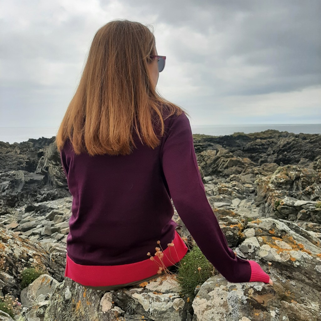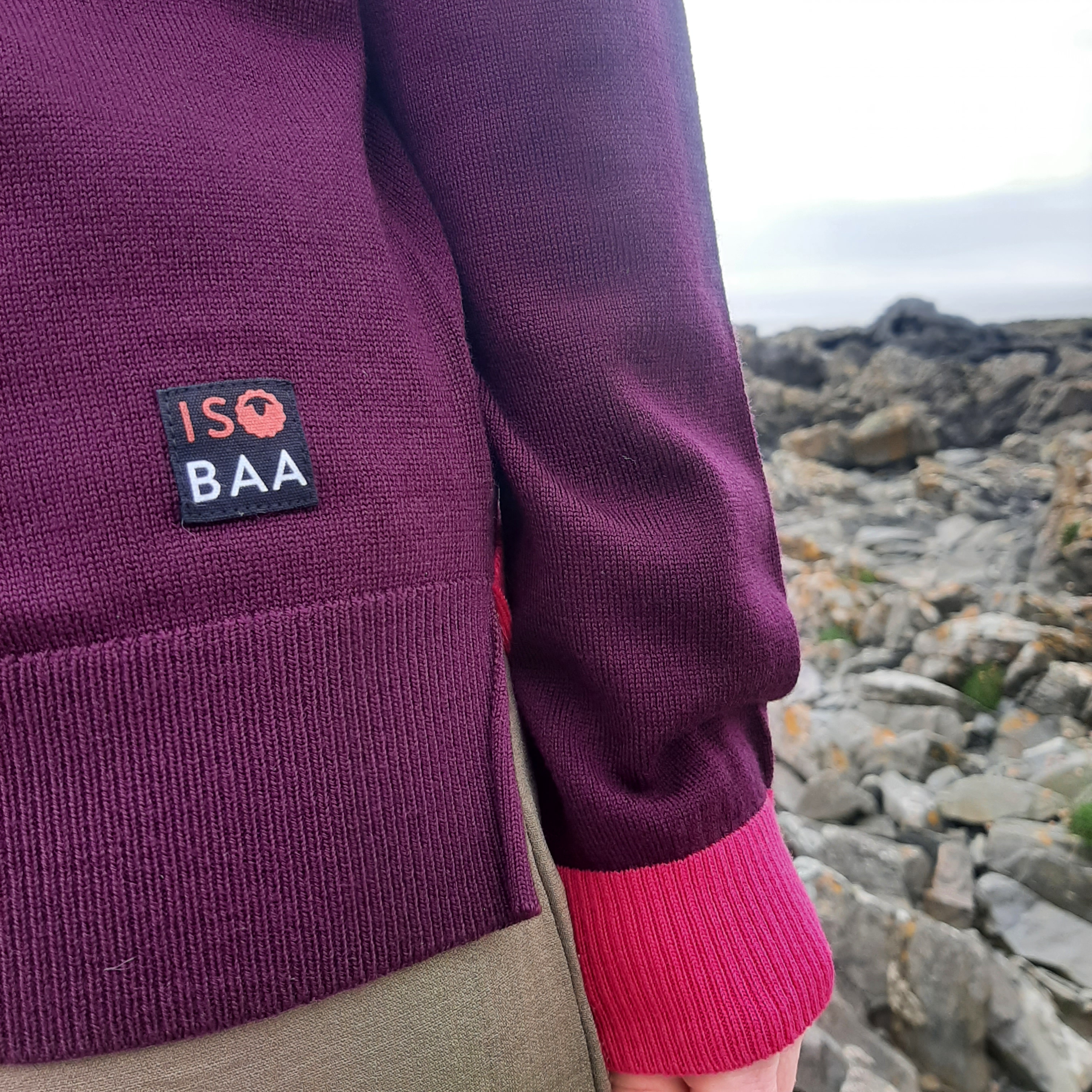 Women’s Merino Crew Sweater – Wine/ Fuschia