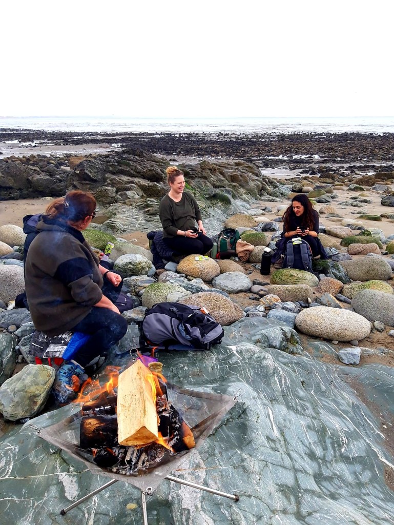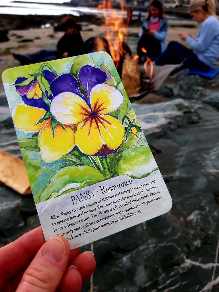 We gathered around a lovely campfire with cups of tea, listening to the hush of the sea, the mountains towering behind us. We paused awhile, intention-setting and drawing cards from a beautiful plant spirit oracle card set. All in all it was a beautiful day of spending time with friends met-before and newly-met that morning, basking in nature and enjoying some time-out from the daily grind!